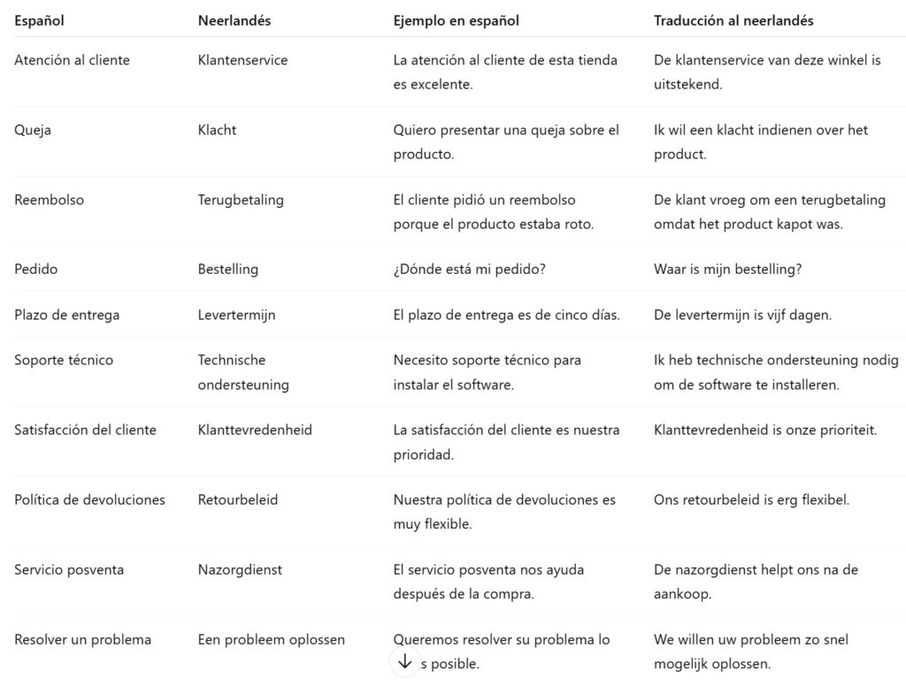 Escribe una lista de palabras y expresiones relacionadas a la atención al cliente. Debe ser nivel B1 MCRE